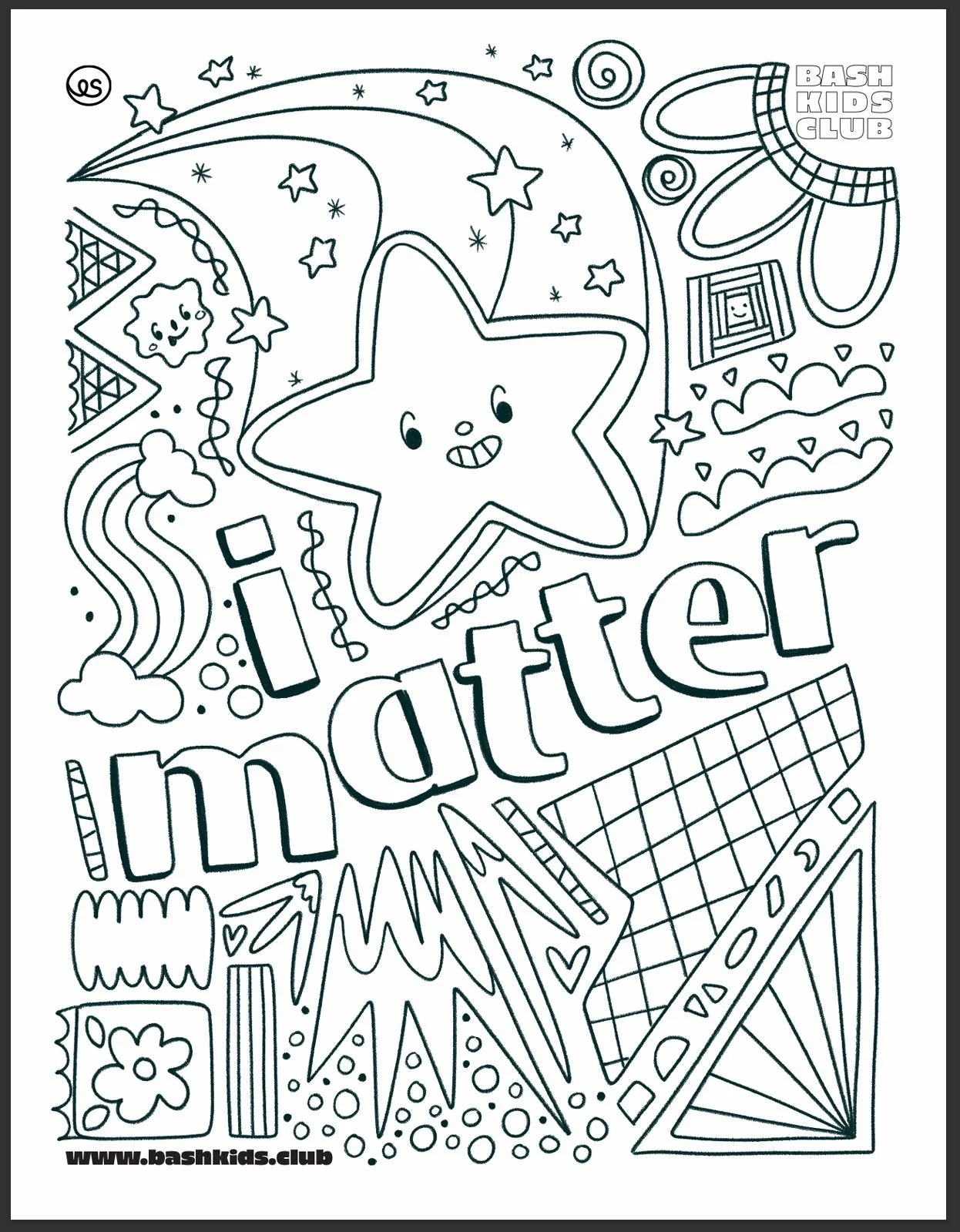 My coloring pages usually feature our “mantra of the week”, now in English and Spanish, so that more of our students can feel seen and recognized.